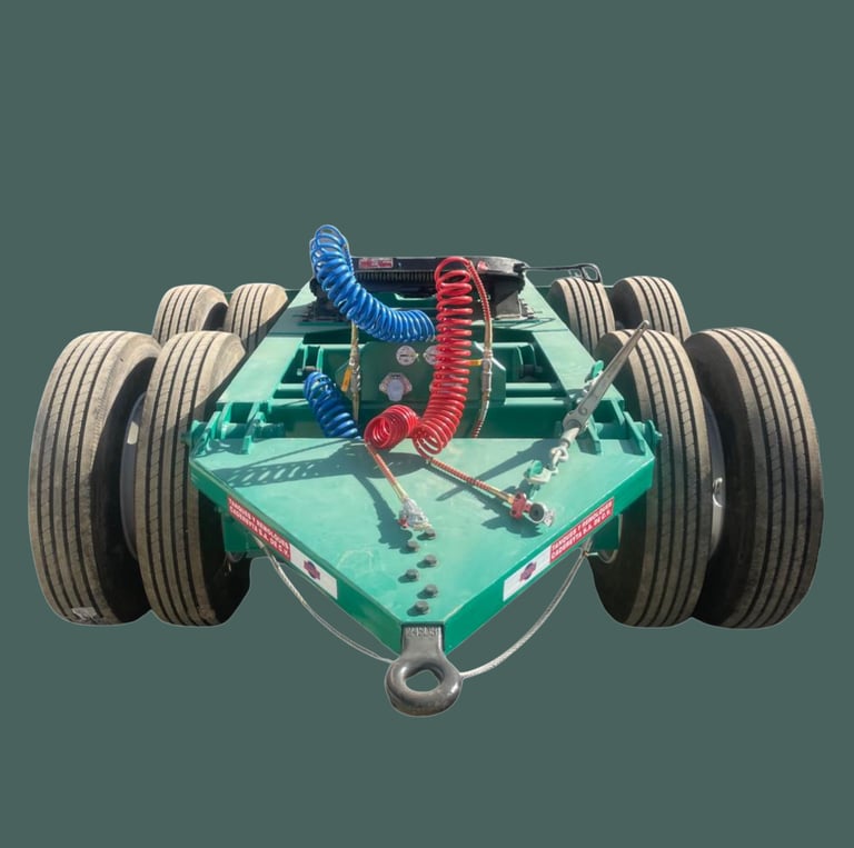 El dolly cuenta con una longitud aproximada de 3.40 metros y un ancho de 2.60 metros, ofreciendo una geometría adecuada para maniobrabilidad, estabilidad y correcta alineación entre remolques durante la operación.