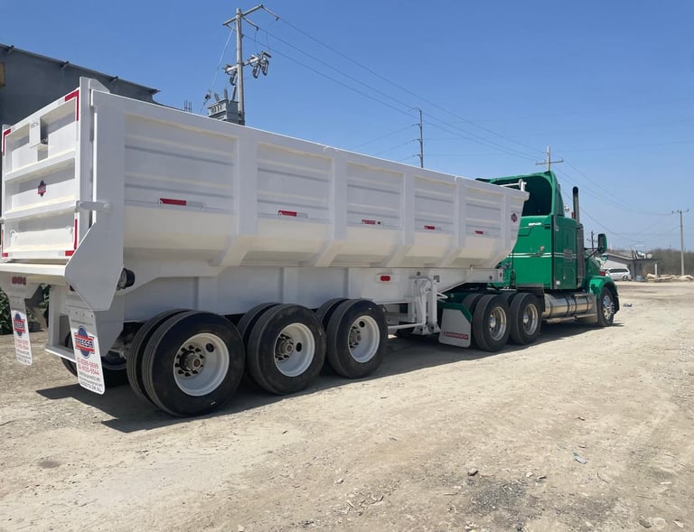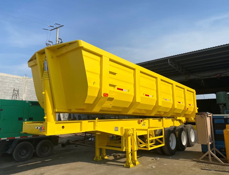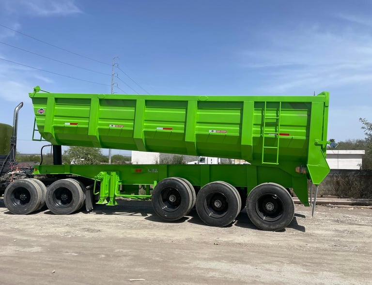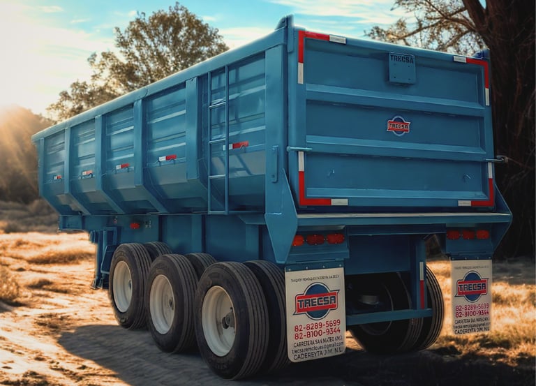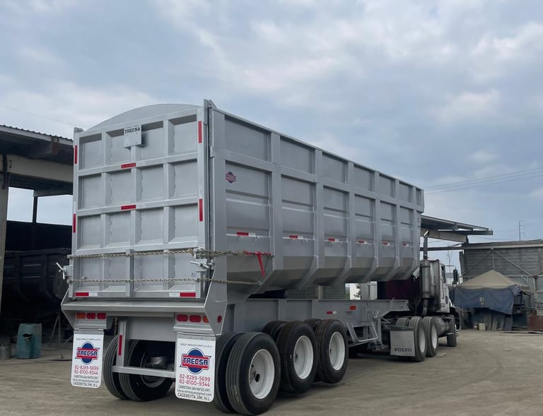 Sistema de descarga trasera diseñado para facilitar la descarga controlada de materiales a granel. El diseño del remolque permite una operación estable y segura durante el proceso de descarga, adaptándose al tipo de material y a las condiciones de trabajo de cada operación.